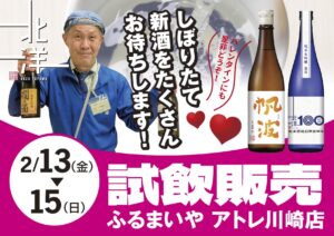 久しぶりの関東地区での試飲販売会となります。ふるまいや様での試飲販売は7月以来の開催となります。この時期ならではの新酒、バレンタイン等のプレゼント用と通常商品だけではなく限定商品も多数取り揃えておりますので是非お越しください。